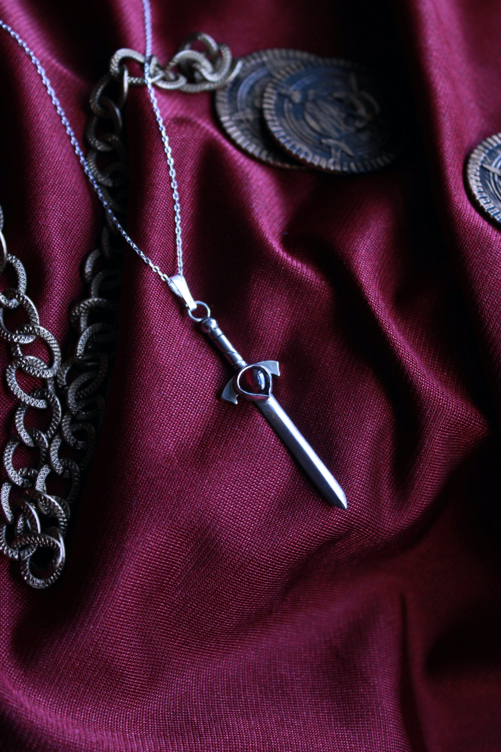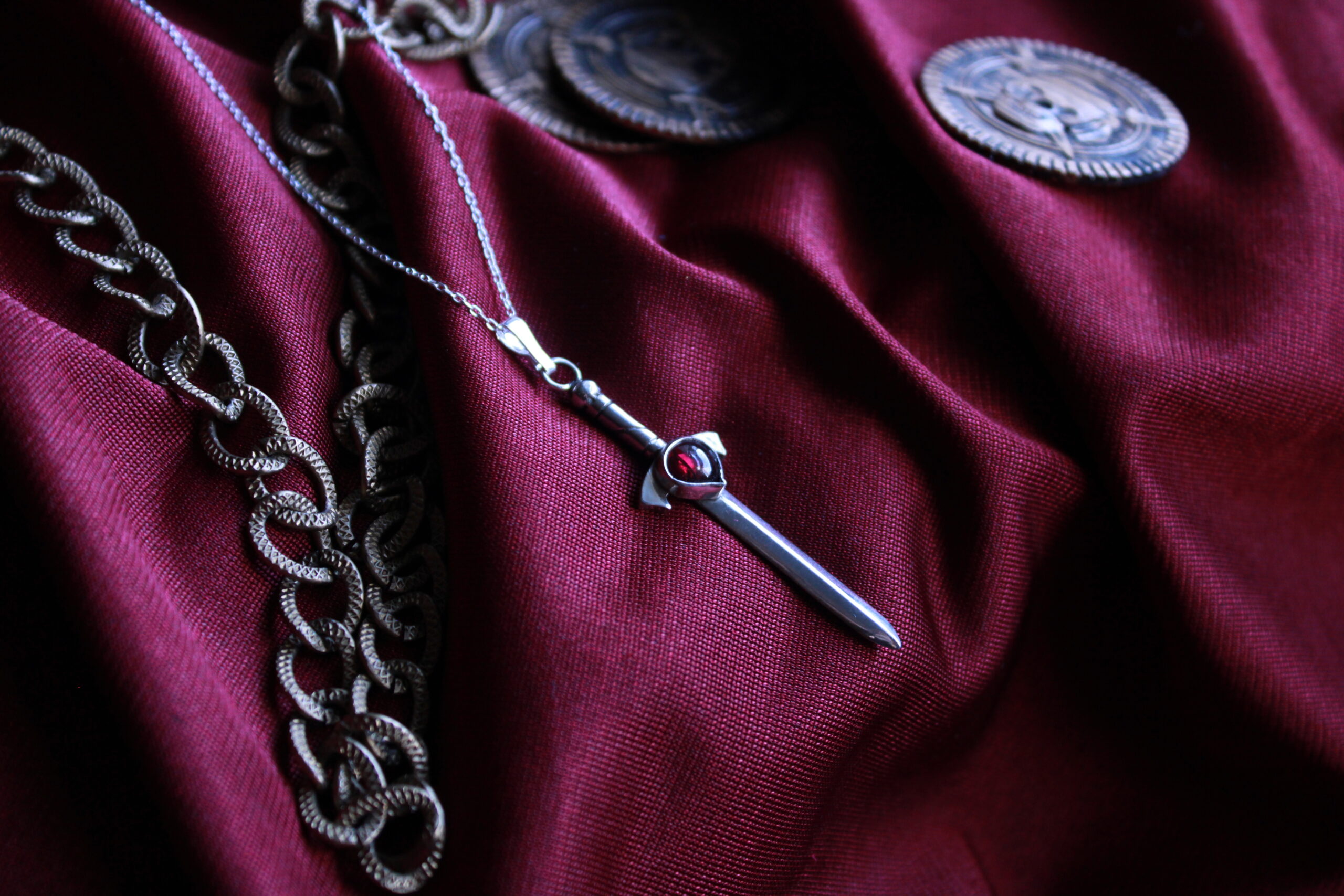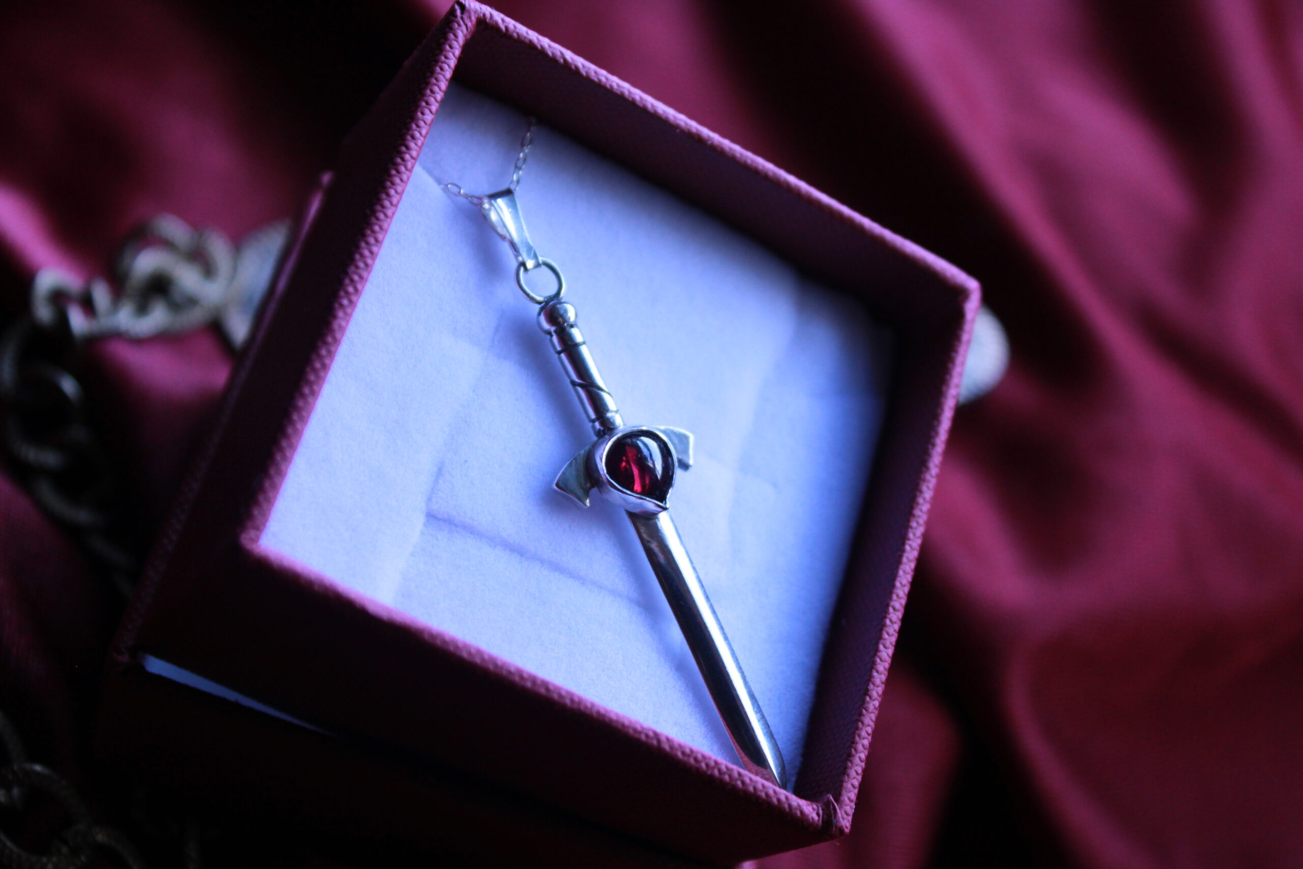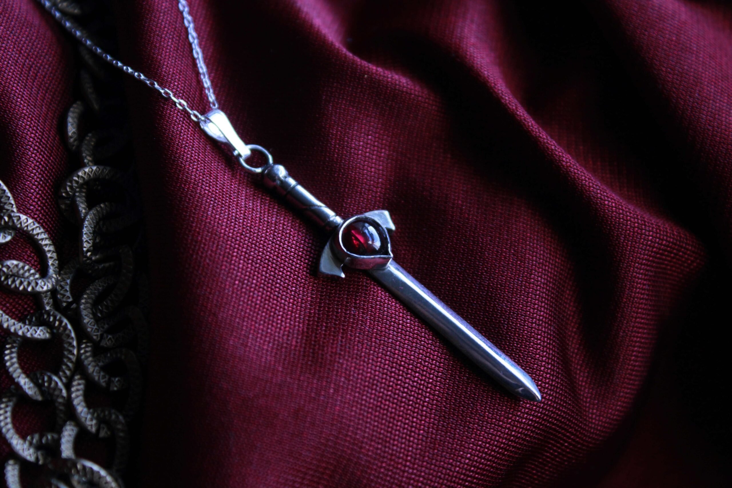 Colgante Espada Encantada de Plata con Granate.