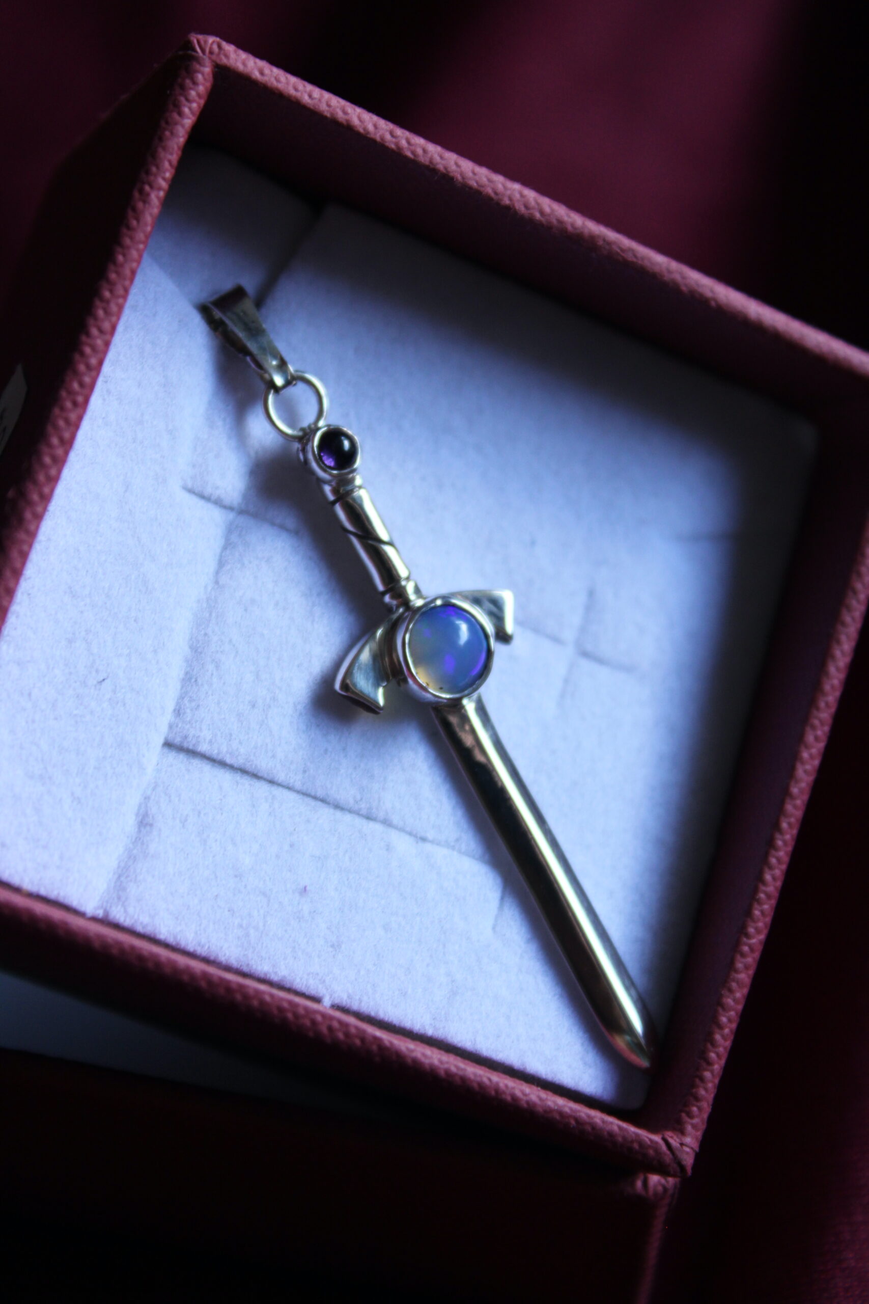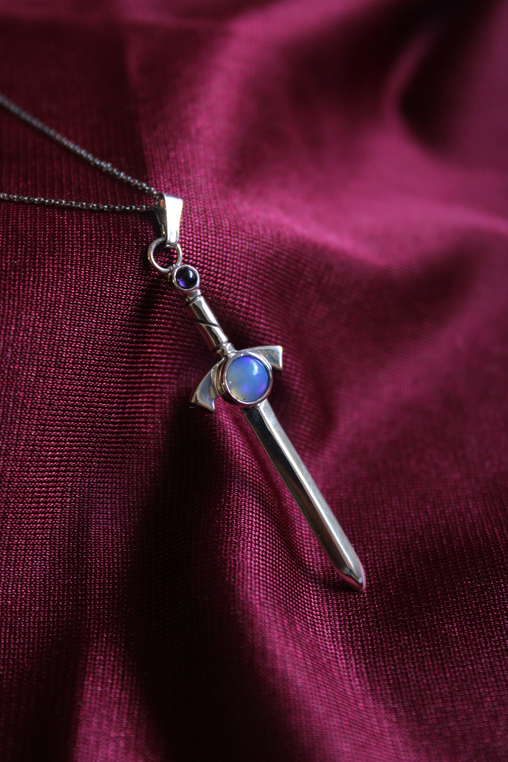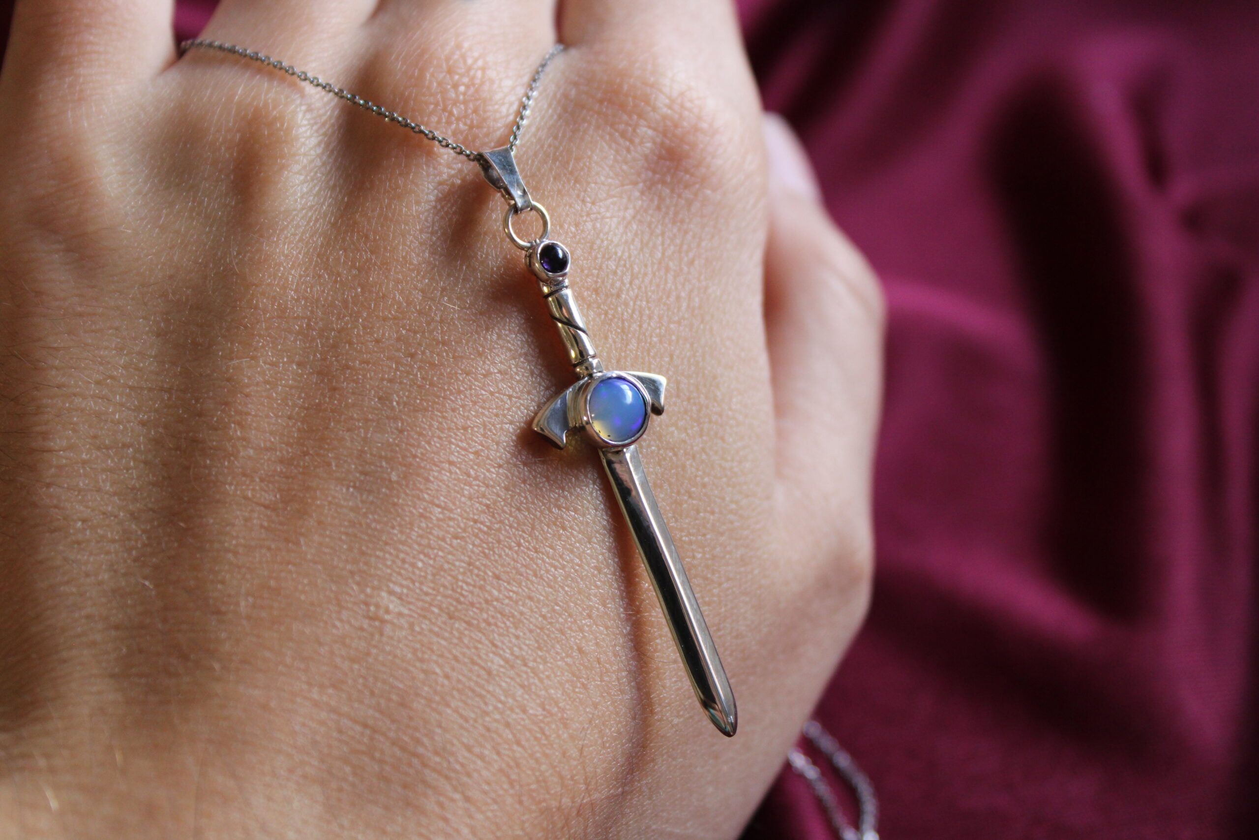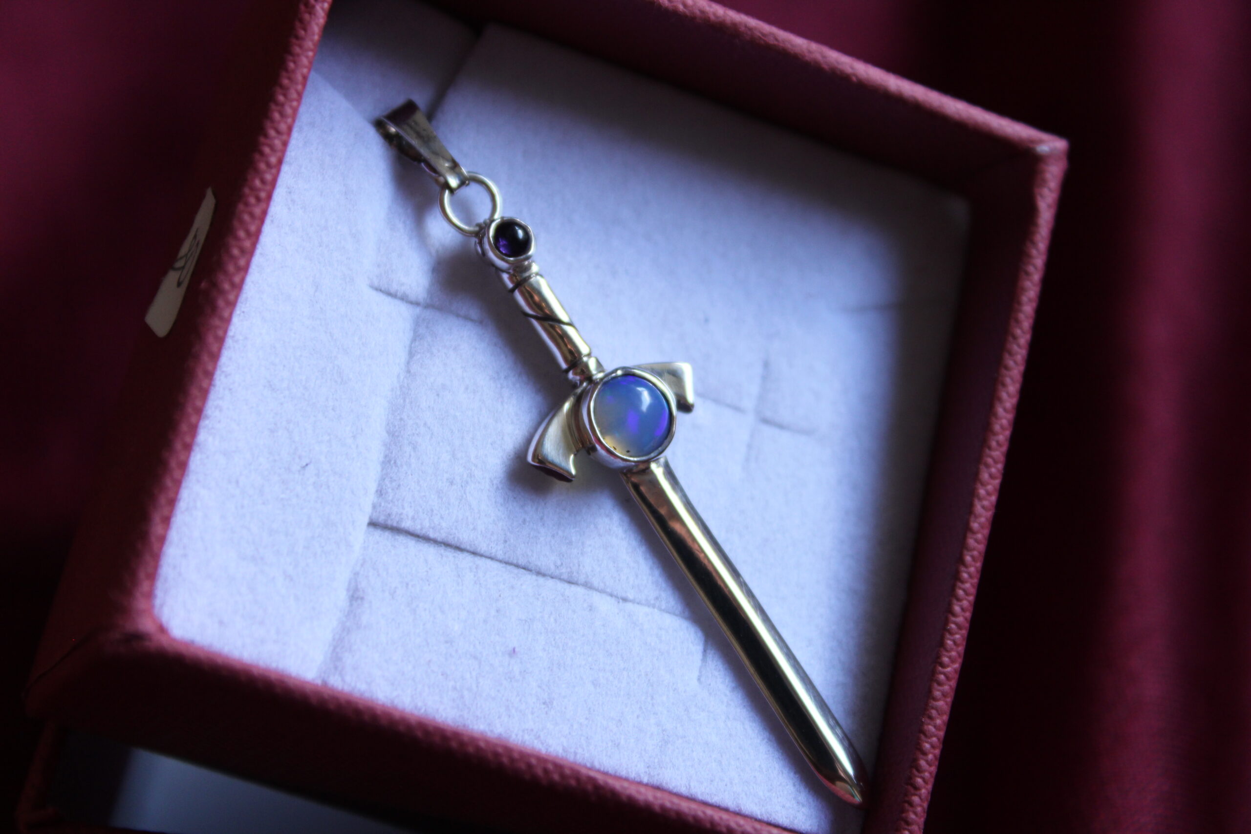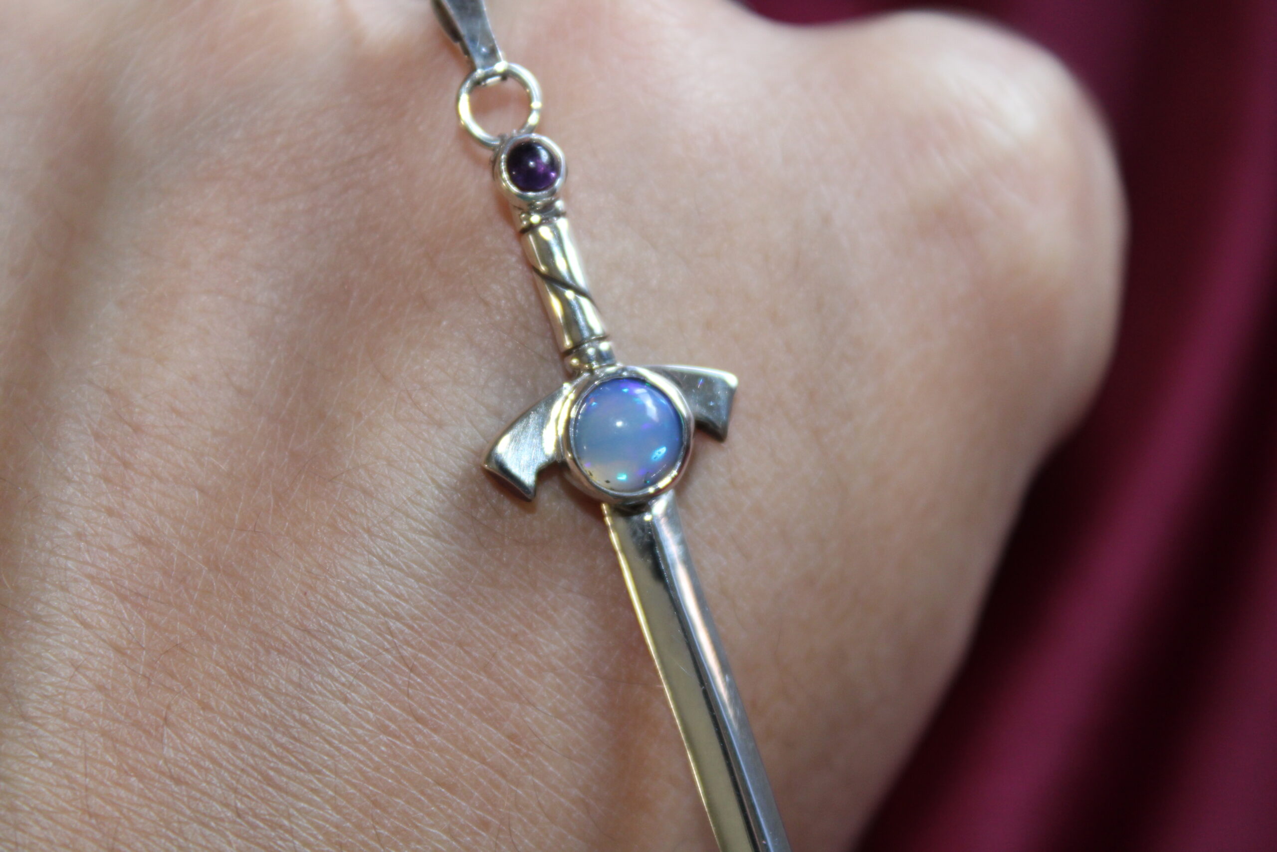 Colgante Espada Encantada de Plata con Ópalo etíope y Amatista.
