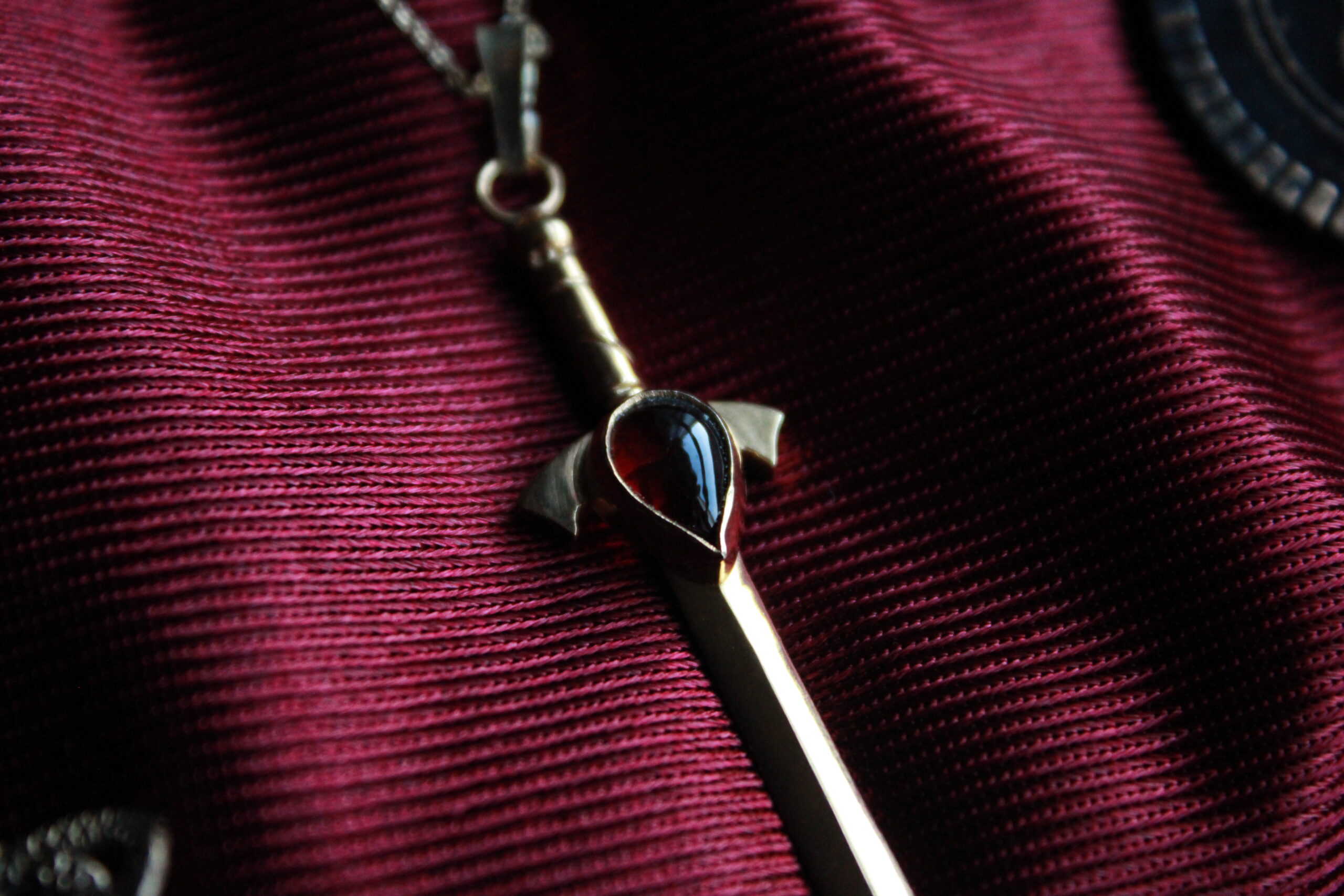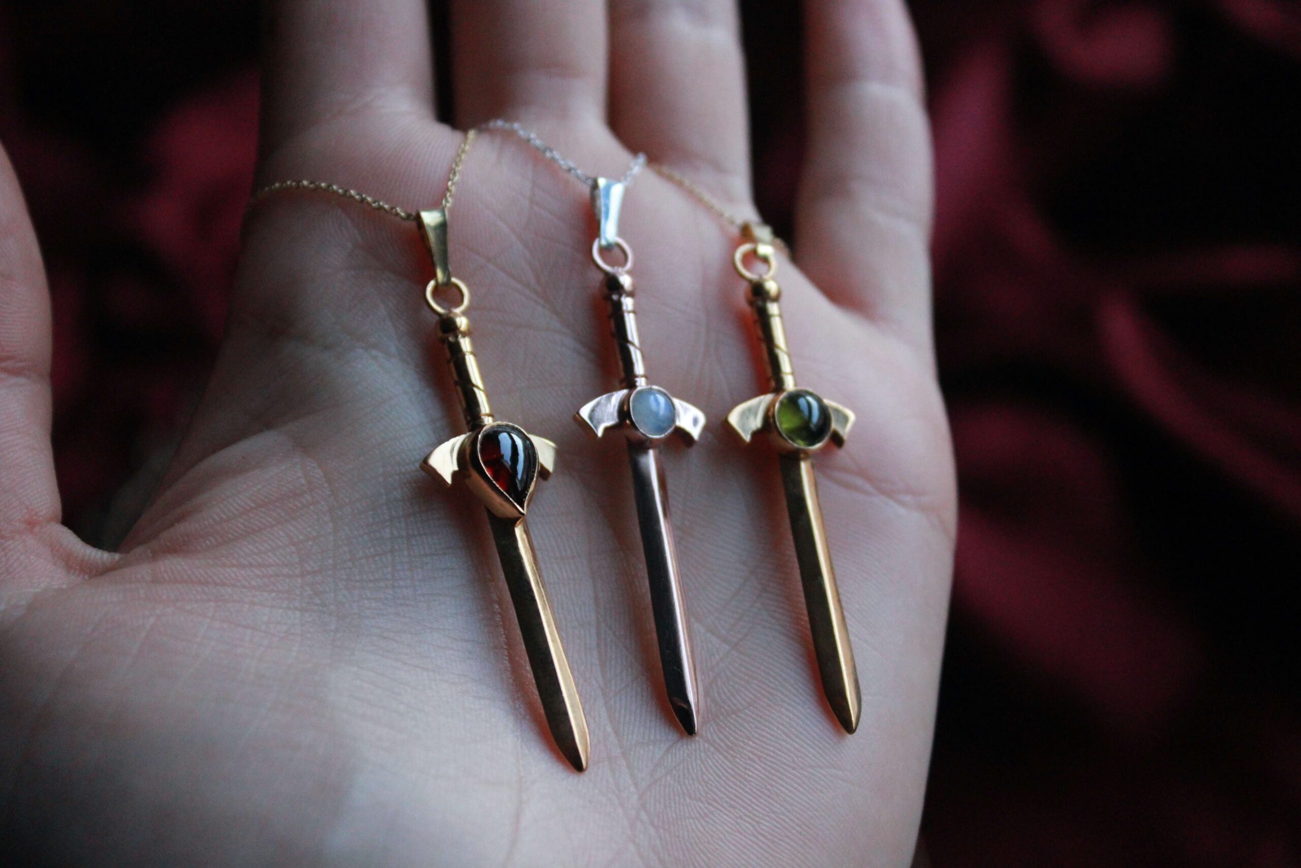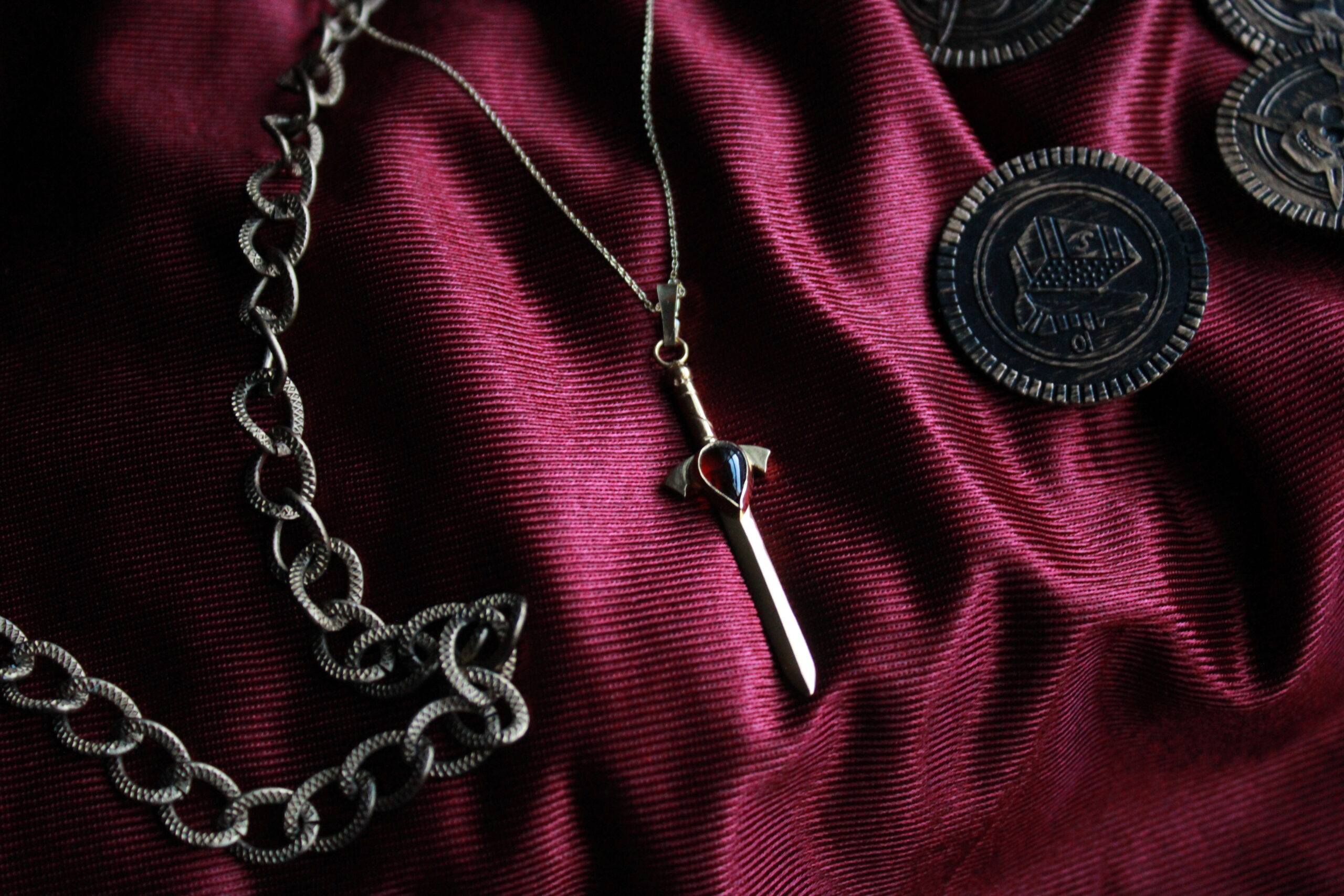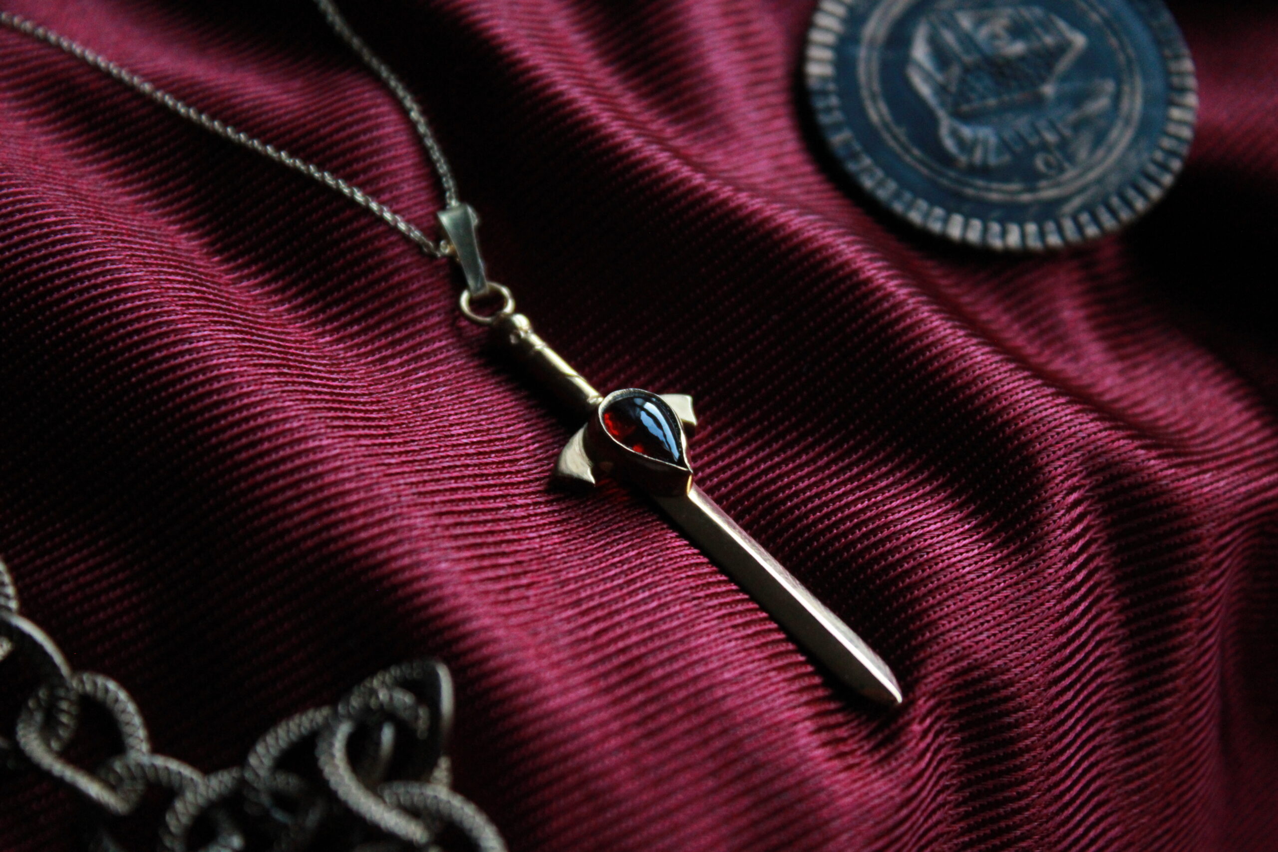 Este elegante colgante en forma de espada es una obra preciosa artesanal. Forjado en plata de ley y meticulosamente bañado en oro amarillo, combina la resistencia de los metales nobles con la calidez de un acabado dorado. En el centro de la espada, una piedra natural de granate brilla intensamente, evocando fuerza, pasión y energía protectora. Su diseño único y lleno de detalles lo convierte en una pieza ideal para quienes buscan un accesorio distintivo con un aire poderoso y sofisticado. Perfecto para complementar cualquier look o como regalo especial para alguien que aprecia la exclusividad y el simbolismo. ¡Lleva contigo el espíritu de la valentía y la elegancia!